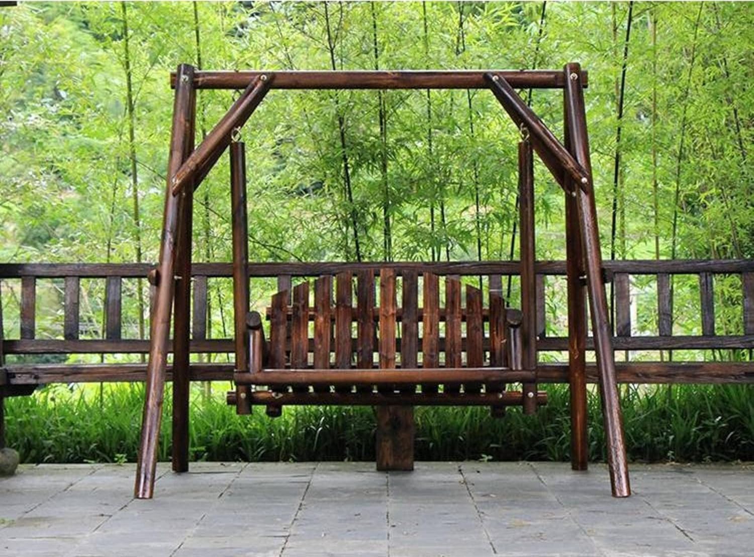Seu-stur Curbonized unti-Corrosion Wood Swing Outdoor Courtyurd Double Swing Hunging Chuir